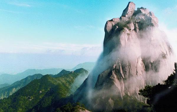 天柱山,亦稱“皖山”或“潛山”,在潛山縣城西北部,漢武帝曾封為南岳。主峰天柱峰,海拔1485米,石骨嶙峋,奇峭險峻。四周有飛來峰、天獅峰、蓮花峰、觀音峰、黑虎峰等山峰,危崖羅列,怪石嵯峨;云海瀑布,幽深瑰麗。有三祖寺、馬祖庵、司元洞、渡仙橋、煉丹臺、石牛洞等勝跡。山中有“天柱云霧”名茶及瑞香木、魚鱗木等多種珍貴植物。為世界地質(zhì)公園、國家重點風(fēng)景名勝區(qū)。境內(nèi)的天柱山又名皖山、皖公山,因其主峰“一柱擎天”而得名。公元前106年漢武帝南巡時封其為“南岳”,后為隋文帝詔廢,故被人們尊為“古南岳”。景區(qū)內(nèi)“峰雄、石奇、洞幽、水秀”,兼有豐富的人文景觀,集北山之雄,南山之秀于一身,自然風(fēng)光雄奇靈秀,人文景觀博大精深,堪稱一幅幅絕妙的山水畫卷。1982年被國務(wù)院公布為全國首批44家國家級重點風(fēng)景區(qū)勝區(qū)之一,2011年5月5日批準(zhǔn)為安徽繼黃山、九華山之后,第三家“AAAAA”級旅游區(qū)、并獲得國家森林公園、國家地質(zhì)公園、中國自然和文化遺產(chǎn)地等稱號。