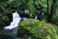 牯牛降雨量充沛,溪流縱橫,溪水常流不斷,潺潺流水,從山頂淙淙而下,遇有石壁斷崖,飛瀉直下形成一道道水瀑,大的如銀河落九天,空谷轟鳴,水汽升騰;小的似白練輕垂,涓涓細流,如泣如訴。十步一小瀑,百步一大瀑,飛瀑相連,蔚為壯觀。溪流碧綠清澈,時深時淺,時緩時急,在山間林里穿行,每遇石凼平地,則形成一個個大小不一的清潭,晶瑩剔透,異彩紛呈,如同一塊塊翡翠,每至雨季,潭瀑相應(yīng),山色朦朧,如一幅幅墨染的山水圖畫。
