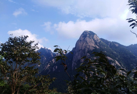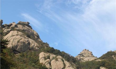 中蓮花峰在上蓮花峰北,海拔937米。主峰突出,峰頂絕險(xiǎn),小峰簇?fù)恚瑲鈩?shì)雄偉。
