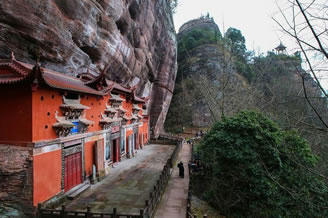 紫霄崖:于齊云巖西南。從浮云嶺西行,經(jīng)百丈泉、馴鹿洞、紫玉屏即達(dá)。古跡有:玉虛宮、治世仁威宮、天乙真慶宮、唐寅手撰碑銘、風(fēng)虎關(guān)、云龍關(guān)遺址及摩崖石刻30余處。
