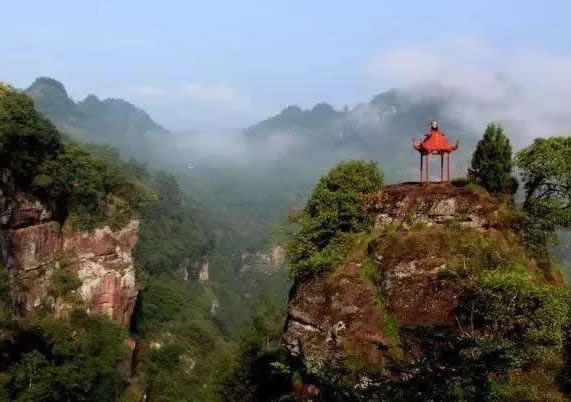 仙人花轎:紅色丹霞巖層,經(jīng)長(zhǎng)期的雨侵風(fēng)蝕,自然形成獨(dú)立而方正的山體景觀。