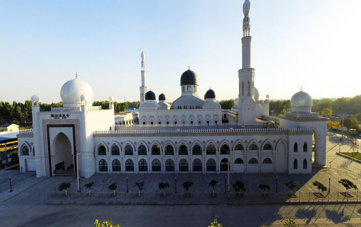 竇店清真寺 2011年8月9日,竇店新建清真寺破土動工,2017年7月1日竣工,并于開齋節(jié)當(dāng)天正式啟用。 竇店清真寺占地14958平方米,建筑面積12142平方米,能同時(shí)容納1500人禮拜。清真寺呈回字形布局,設(shè)有大殿、副殿、講堂、辦公室、接待室、會議室、展室、埋體房、洗浴室、餐廳等,大殿位于正中央,形成“眾星捧月”的建筑風(fēng)格。
