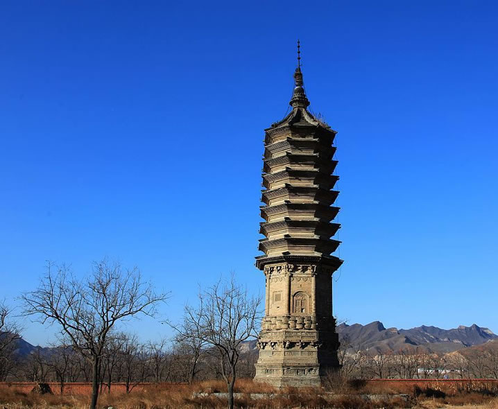 豆各莊塔 豆各莊塔位于青龍湖鎮(zhèn)豆各莊村,為房山區(qū)文物保護(hù)單位。始建于唐代。坐西朝東,是一座八角密檐式磚塔,通高約15米。塔身上有磚雕。八面磚雕輪、螺、傘、蓋、花、罐、魚、長的佛八寶圖像。塔基上端為三層磚雕仰蓮。東面辟券門,其它各面分別開設(shè)磚雕的假門、假窗。塔身之上是八層仿樓閣密檐。第一層檐下裝飾斗拱。其它每兩層榴之間做成仰、覆蓮瓣。檐子為疊澀式。塔剎由下大上小的兩層磚雕蓮花組成。這座塔的特點(diǎn)是采用蓮花裝飾的成分多:整個(gè)塔由基座上的三層仰蓮?fù)衅,門窗層以上每兩層檐中央又裝飾上下對稱的仰覆蓮瓣,共有八層;再用蓮花封頂。 風(fēng)景名勝