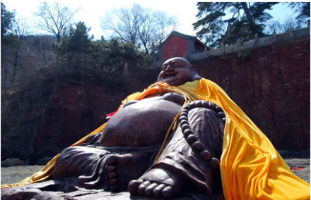 彌勒佛:千佛閣上坐神佛,納得天下福滿門。千年香樟木雕彌勒佛,作為戒臺(tái)寺唯一一尊露天佛,常得日月之光,納天地靈氣,立于千佛閣上修得萬(wàn)佛之心,用萬(wàn)世不變的歡喜笑顏,用大肚笑納天下事,也容載著天下人的希望。彌勒佛即未來(lái)佛,俗稱大肚彌勒,他強(qiáng)調(diào)要大度能容,不要計(jì)較人世間的是非憎愛(ài)。大肚彌勒寓神奇于平淡,示美好于丑拙,顯莊嚴(yán)于詼諧,現(xiàn)慈悲于揶揄,代表了中華民族寬容、和善、智慧、幽默、快樂(lè)的精神。香樟木質(zhì)地堅(jiān)硬,且具香氣,是明清時(shí)期宮廷木器三大主要用材之一。香樟木年份越久越珍貴,千年香樟木自然就成了可遇不可求的無(wú)價(jià)之寶。戒臺(tái)寺此件木雕大佛系為一整塊千年香樟木根雕,雕工精美,形態(tài)可鞠,盤腿而坐,袒胸露腹,自然形態(tài)惟妙惟肖。