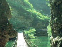 棧道:京東大峽谷以五潭稱奇,然而跨四潭的棧道也稱標(biāo)新立異,各不相同,成為大峽谷的又一奇觀,一、二棧道依崖而成,似長(zhǎng)龍臥坡,四潭棧道由數(shù)十根鋼索相連而成,攀崖而上,跨潭而過,似臥頂長(zhǎng)虹,走在上面搖搖晃晃,險(xiǎn)象橫生,難免不讓人想起紅軍強(qiáng)渡“大渡河”、勇過鐵索橋的壯舉,游客們身臨其境,其感覺自當(dāng)終生難忘。