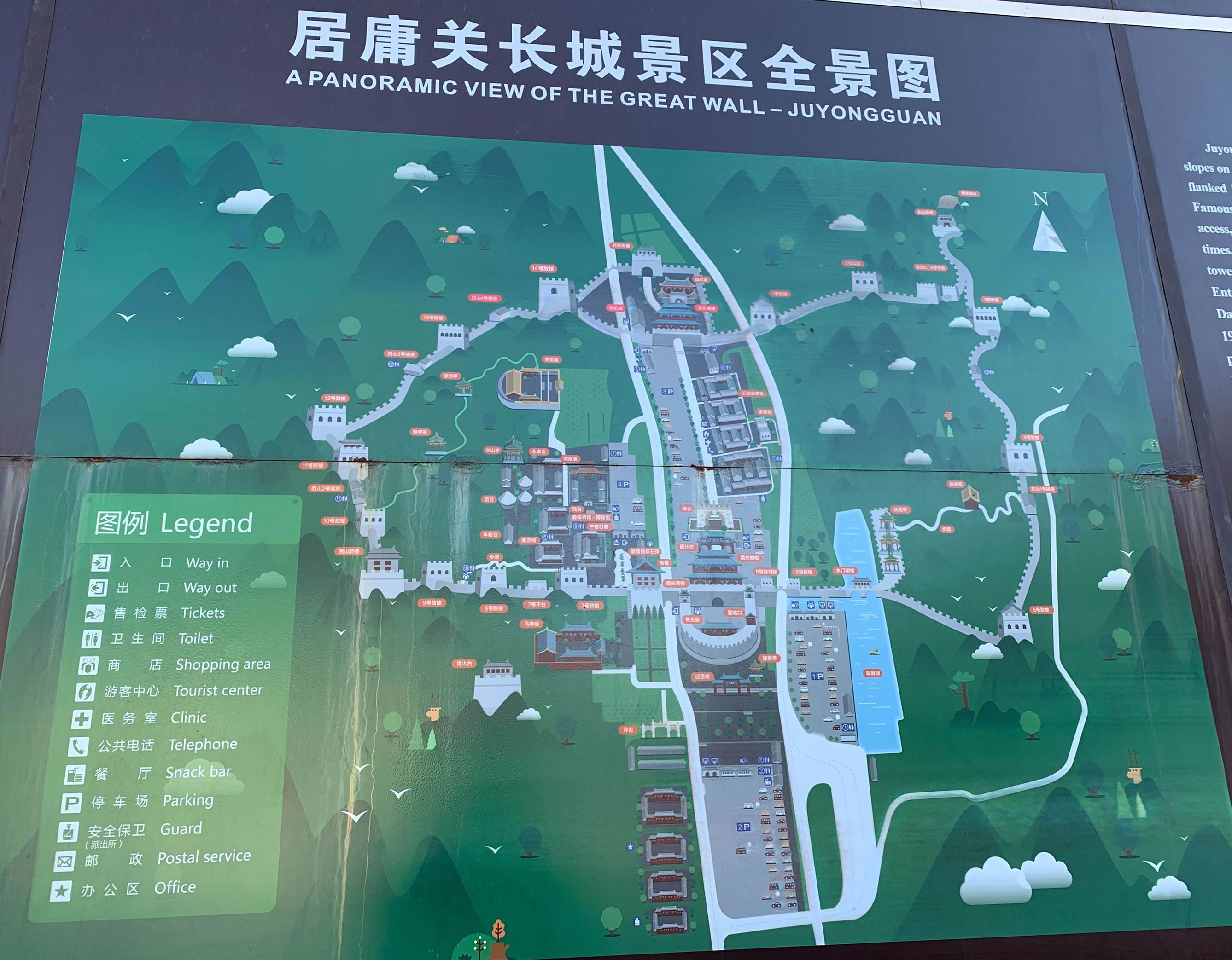 2000年8月至2002年4月,十三陵特區(qū)辦事處對(duì)居庸關(guān)長(zhǎng)城實(shí)施了二期修復(fù)工程,主要在云臺(tái)與北城樓之間復(fù)建居庸古道和仿古一條街,完善了停車場(chǎng)地、翠屏湖、住宿餐飲購(gòu)物娛樂(lè)健身等旅游配套服務(wù)設(shè)施。其中長(zhǎng)412米、寬10.3米的居庸關(guān)古道全部用青白石鋪砌而成;復(fù)建了建筑面積12600平方米的居庸關(guān)長(zhǎng)城古客棧,新建了污水處理廠和環(huán)保型水源空調(diào)、燃油鍋爐等動(dòng)力設(shè)施,并對(duì)原有電力設(shè)備進(jìn)行了改造,同時(shí)建立健全了具有火險(xiǎn)自動(dòng)報(bào)警和噴淋式自動(dòng)滅火裝置的消防系統(tǒng)。 |