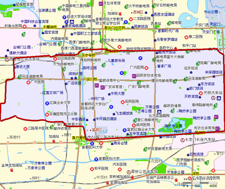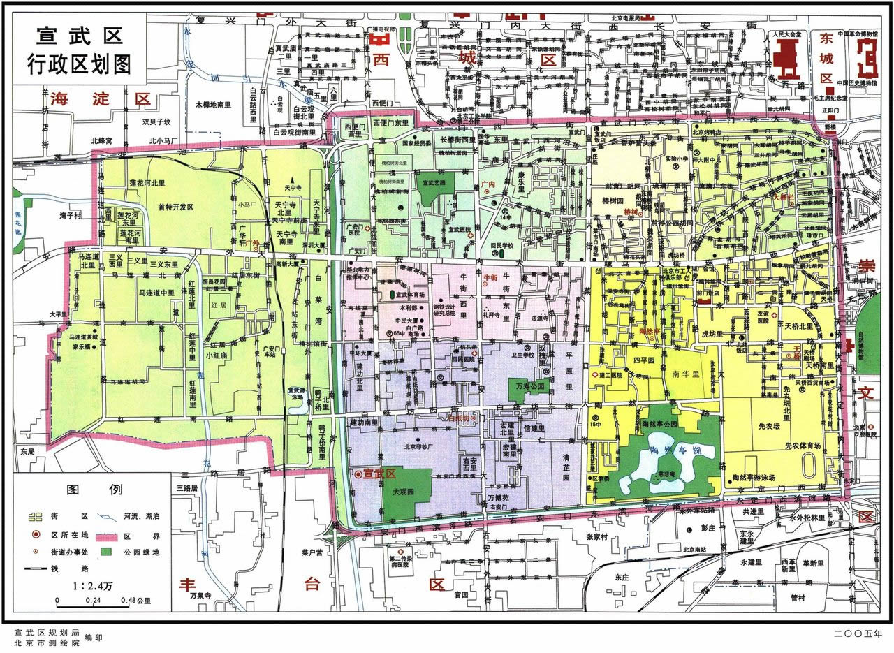 宣武區(qū)轄8個(gè)街道:大柵欄街道、天橋街道、椿樹街道、陶然亭街道、廣安門內(nèi)街道、牛街街道、白紙坊街道、廣安門外街道。