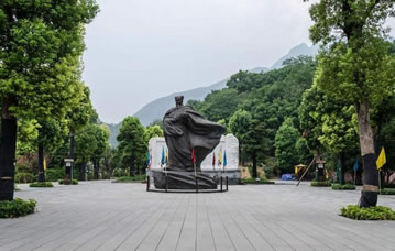 忠義廣場位于白帝山北側,占地7000平方米。廣場中央是一尊諸葛亮鑄像,鑄像總高7.9米,人像高5米。諸葛亮手握羽扇,衣襟飄拂。鑄像后面是用漢白玉雕刻制作的《出師表》碑,碑長16米、高4米、厚2米,正面書前《出師表》,背面書后《出師表》。