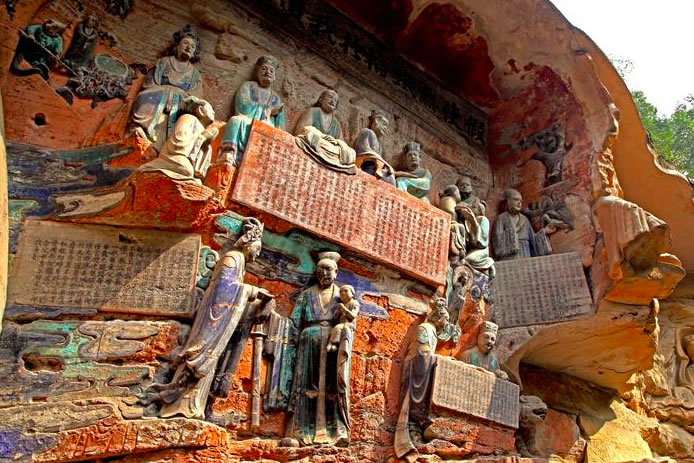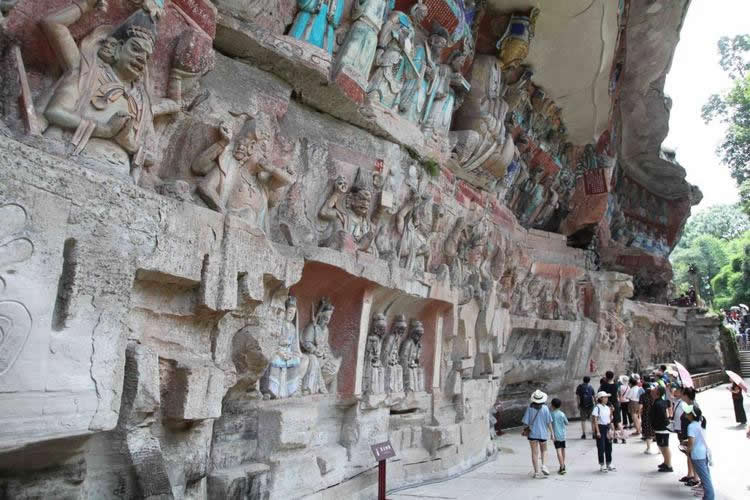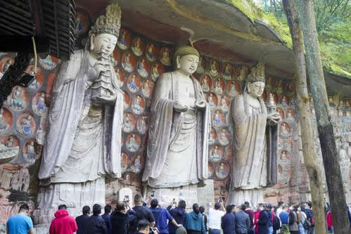 重慶市的大足石刻以其規(guī)模宏大、雕刻精美、題材多樣、內(nèi)涵豐富和保存完整而著稱于世。它集中國佛教、道教、儒家“三教”造像藝術(shù)的精華,以鮮明的民族化和生活化特色,成為中國石窟藝術(shù)中一顆璀璨的明珠。它以大量的實(shí)物形象和文字史料,從不同側(cè)面展示了九世紀(jì)末至十三世紀(jì)中葉中國石刻藝術(shù)的風(fēng)格和民間宗教信仰的發(fā)展變化,對中國石刻藝術(shù)的創(chuàng)新與發(fā)展做出了重要貢獻(xiàn),具有前代石窟不可替代的歷史、藝術(shù)和科學(xué)價(jià)值。許多歐洲人、尤其是法國人,對大足石刻寵愛倍加。