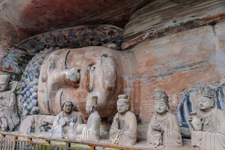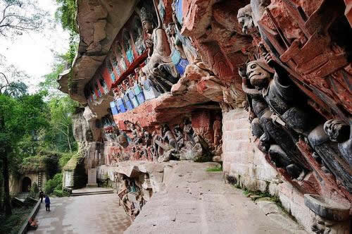 大足石刻位于重慶市大足區(qū)境內(nèi),是唐、五代、宋時(shí)所鑿造,明、清兩代亦續(xù)有開鑿,F(xiàn)為世界文化遺產(chǎn),世界八大石窟之一。