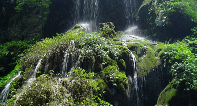 大大小小的泉水順著苔鮮爭(zhēng)相跳躍而下,在陽(yáng)光的投射下熠熠生輝,讓你想起古人所云:“大珠小珠落玉盤。”人在峽中走,水在峽中飛,時(shí)隱時(shí)現(xiàn)的陽(yáng)光,飛泉流瀑濺起的水霧,奇形怪狀的石乳形成一片如夢(mèng)如幻的世界,這浪漫之旅,讓人留連忘返,不忍離去。