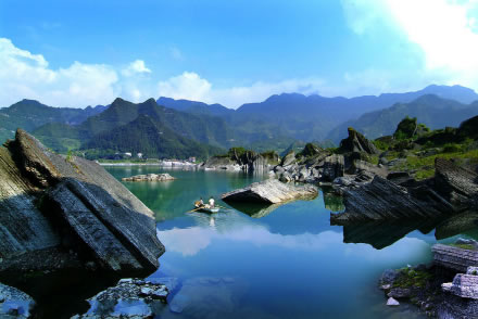 重慶黔江小南海國家地質(zhì)公園,位于重慶市黔江區(qū)小南海鎮(zhèn)南海村,重慶與湖北交界處,距黔江城北部30余千米。是一個(gè)融山、海、島、峽諸風(fēng)光于一體的高山淡水湮(堰)塞湖泊,也是中國國內(nèi)迄今保存最完整的一處古地震遺址。