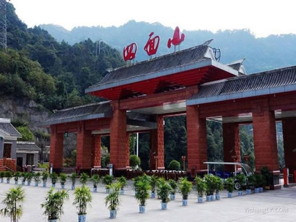 望鄉(xiāng)臺瀑布高158米,寬48米,迄今為中國單級落差最大的寬幅瀑布,比黃果樹瀑布高出一倍以上,被譽為“華夏第一高瀑”“中國最美十大瀑布”,是四面山標志性景點。瀑布不僅落差大,水聲如雷,震山撼谷,而且只要是在晴朗之日,經(jīng)陽光的折射,彩虹融入飛瀑,在山谷間架起彩虹橋。瀑布周圍森林植被環(huán)繞丹霞畫壁,整體輪廓酷似心形,是全球最大的自然形成的瀑布類心形丹霞景觀,被譽為“天下第一心”。在望鄉(xiāng)臺瀑布正對面,與“天下第一心”相呼應,是一個巨大的巖洞,由丹霞地貌風化腐蝕成形,形似“巨眼”,被譽為“天下第一眼”。曾名逍遙洞,傳說天上逍遙二仙途經(jīng)此處,見此地如此美景,于是作法開辟洞穴,供閑暇時欣賞美景。望鄉(xiāng)臺瀑布通過采用聲光電技術(shù),在夜間經(jīng)148組大型LED環(huán)保燈具照射成為“七彩瀑布”,是全球第一例七彩燈光瀑布,也是中國唯一能在夜間觀看的大型燈光瀑布。瀑布觀景公路長達3千米,游客可以在旅游車前進過程中,由遠而近、自下而上地從不同角度、不同層次觀賞。