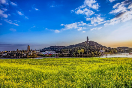 景區(qū)既是宋初著名道教學(xué)者和道教詩(shī)人陳摶的故鄉(xiāng),又是“中國(guó)最美油菜花!。油菜花核心區(qū)種植面積達(dá)3萬(wàn)余畝,其中以油菜為主要背景、小麥為配景種植的中國(guó)最大油菜花太極圖案,直徑達(dá)236米。花海泛舟,春風(fēng)佛面,清澈的瓊江穿境而過,形成了“十里菜花、黃金鋪地”的壯美景觀。2008開始,已經(jīng)連續(xù)舉辦了十二屆菜花節(jié),2009年,潼南油菜花景區(qū)被評(píng)為“中國(guó)最美的油菜花海”之一,2010年被評(píng)為“重慶十大春季旅游目的地”之一。