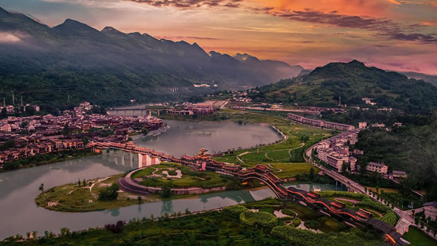 整座濯水風雨廊橋,不僅為世界第一長度的廊橋,在形態(tài)上、結(jié)構(gòu)上、工藝上實現(xiàn)了傳統(tǒng)與現(xiàn)代的結(jié)合,中式與歐式的結(jié)合,東方建筑美學與西方建筑美學的結(jié)合,更是傳統(tǒng)木質(zhì)廊橋與使用膠合木和鋼架相結(jié)合的全新的結(jié)構(gòu)方式,實現(xiàn)了建筑上新的探索和嘗試。