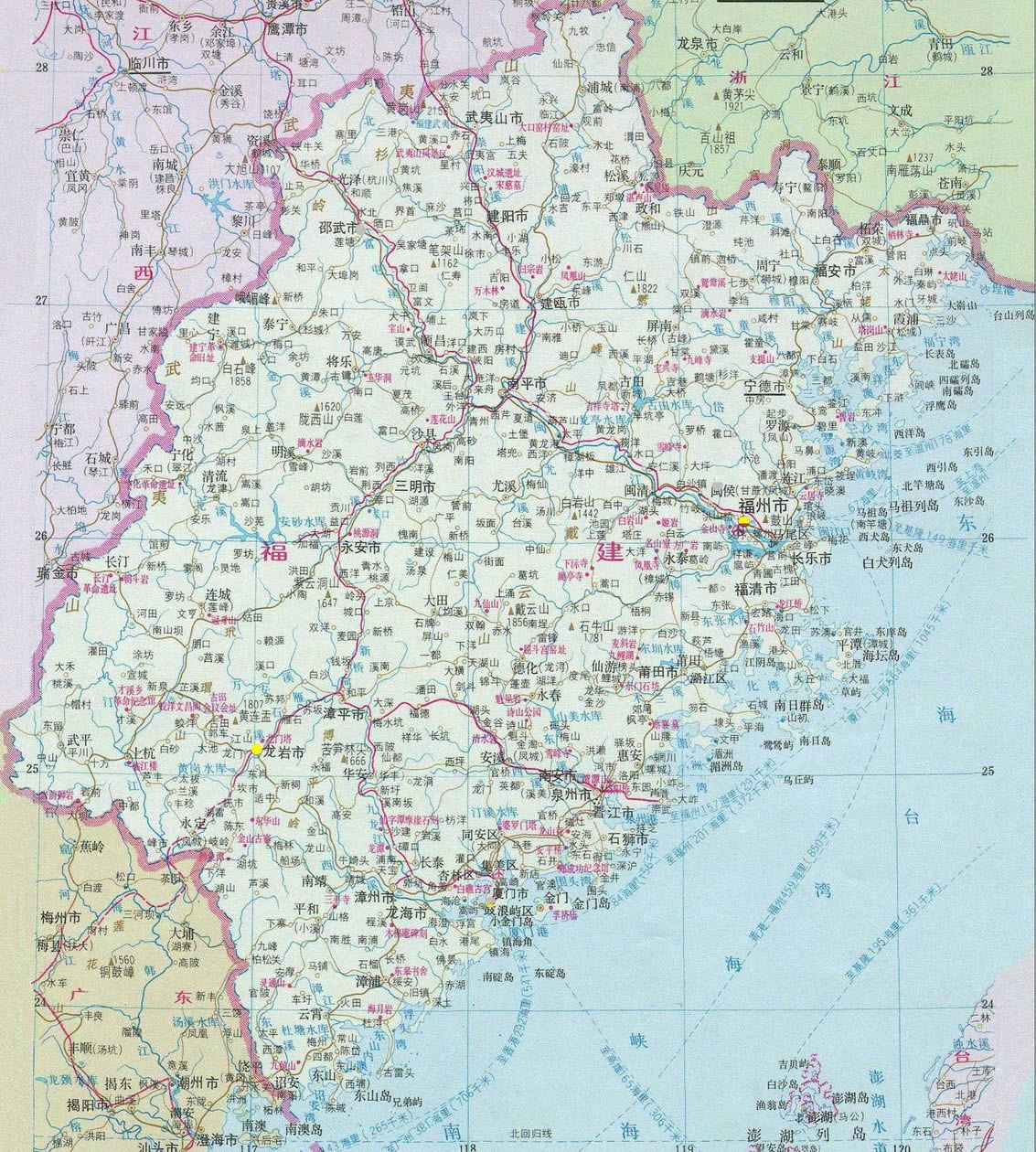 福建地處中國東南沿海(北緯28 ° 30′~28° 22′,東經(jīng)115° 50′~120° 40′), 毗鄰浙江 、江西 、廣東 、與臺灣隔海相望,是中國大陸距離東南亞和大洋洲海上距離最近的省份之一,也是中國與世界交往的重要窗口和基地 。  福建境內(nèi)常年溫暖濕潤,年平均溫度17℃~21℃,平均降雨量1400mm~2000mm 。 全省土地面積12.14萬平方公里,其中山地丘陵占80%以上 。 福建是以漢族為主、多民族聚居的省份,到2000年為止,全省常住人口將達到3470萬人 。福建又是著名僑鄉(xiāng)和臺胞祖籍地,旅居海外的華人、華僑達800多萬人,臺灣同胞中80%祖籍福建。