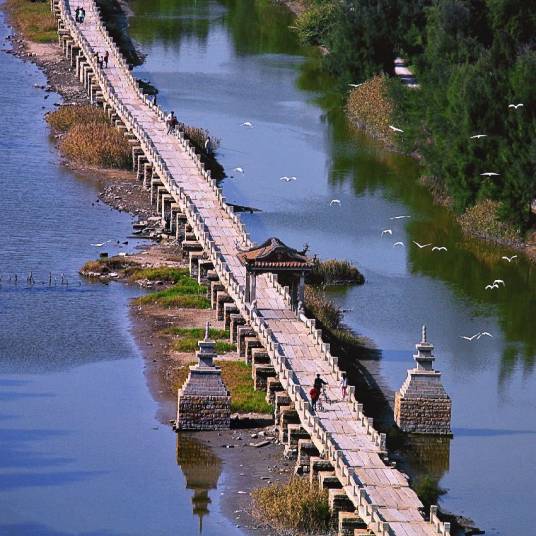 安平橋,曾用名五里橋、西橋、安海橋,是中國福建省泉州市境內(nèi)連接晉江市和南安市的一座橋梁,是世界上中古時代最長的梁式石橋,也是中國現(xiàn)存最長的海港大石橋,是古代橋梁建筑的杰作,享有“天下無橋長此橋”之譽。
