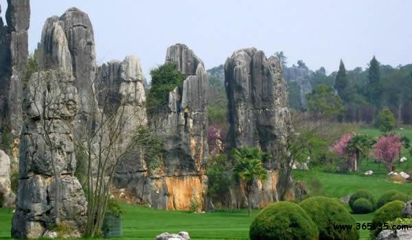 洪云山:位于鱗隱石林景區(qū)西部湖峰坡麓地帶,距鱗隱石林1.5公里,面積約0.56平方公里。上部有溶斗洼地,其中布滿著多種形態(tài)的石芽和石柱,仿佛是天然的盆景園。匯集于溶斗洼地內(nèi)的地表水流,通過灰?guī)r裂隙下滲,自其下部的洪云洞流出,清澈的泉流終年不斷。洪云洞內(nèi)的鐘乳石等化學(xué)溶積物仍在發(fā)育之中,色彩繽紛,光耀奪目,頗為迷人。"主要景點有:桃源活水、巖峽巖、金雞報曉、老虎撲食、玉兔望月、松鼠伏壁等30多處,十分形象逼真。