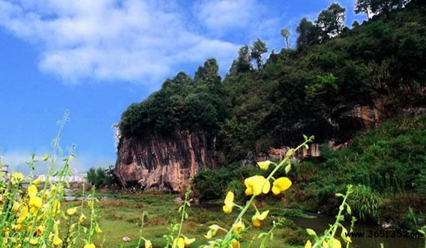 玉虛洞:在明溪縣北郊二公里黃坡山下。相傳古時這里龍蛇作祟被玉虛仙翁鎮(zhèn)服得名。玉虛洞分為明洞、暗洞、外景三個游覽點。明洞前有“觀音殿”,面積約150平方米,由三根天然石柱支撐。洞口有明代鐫刻“玉虛洞天”、“玉虛仙洞”、“玉宇天漿”等擘窠大字。洞口下方新建檐歇山式天柱閣。洞內有天泉、斗獅、龜石、步丹臺等十幾景。后為“桃華洞”,廣容千人,巖石晶瑩、色彩斑斕,有佛頭巖、祥云巖、隱鵲巖、躍魚石等十幾景。其中虛鳴竅最妙,用蘆掃輕拍即發(fā)出巨響。