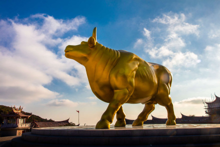 重修的祖殿東側小山坡上有頭福光萬丈的金牛,游客沿花紋元素登高臺階可得“福祿壽喜”祝福,金牛底座設置成轉盤,游客可根據(jù)自己的吉時轉動牛的方向,再圍繞金牛轉行,可完成“牛轉乾坤,人轉錢來”的祈福體驗。