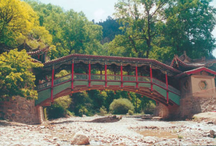 經(jīng)明末戰(zhàn)亂之后,山里的香客已經(jīng)絕跡,只留下寂靜的空山。谷內(nèi)原有一座臥橋,當(dāng)時(shí)已被洪水沖毀,只剩下兩個(gè)橋墩。劉一明觸景生情,無限感傷,立志要把此山修整一番,恢復(fù)“興隆”勝跡。于是他行醫(yī)治病,為興隆山募集資金。經(jīng)過多年的努力,在山上修建了百十座殿閣亭樓,還架起了一座宏偉的木拱橋,當(dāng)時(shí)取名“迎善橋”,意思是迎接八方的善士。從此,興隆山的香火四季不衰。后來山洪暴發(fā),橋又被沖跨,劉一明非常惋惜,束手無策。他有一個(gè)徒弟叫唐童,一天在邊采藥,見有人落水,便不顧一切地下水搭救,救上岸一看,是個(gè)又瞎又聾的老婆婆。唐童沒有嫌棄老人,而是替她換好衣裳,找來許多食物給她吃。老婆婆覺得唐童善良,就送給他一根三寸長(zhǎng)的麥秸,說遇到河流擋路,它可以當(dāng)橋。唐童接過麥秸,正要道謝,老婆婆忽然不見了。唐童想驗(yàn)證老婆婆的話,來到河邊,把麥秸放在河上,轉(zhuǎn)眼間就成了一座精美的橋。從此,這座橋再也沒有被洪水沖跨過。