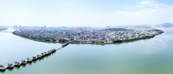 廣濟橋始建于南宋乾道七年(1171年);明朝嘉靖九年(公元1530年)形成“十八梭船廿四洲”的格局;解放前殘破不堪;1958年進行加固維修,并拆除了十八梭船,改建為三孔鋼架及兩處高樁承臺式橋梁;2003年10月開始進行全面維修,總體按明代風(fēng)格為修復(fù)依據(jù),功能定位為旅游觀光步行橋;2007年竣工。
