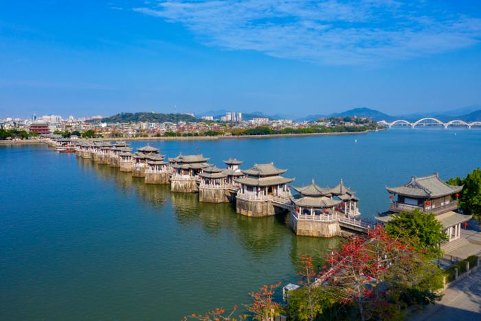 廣濟橋,即潮州廣濟橋,古稱康濟橋、丁侯橋、濟川橋,俗稱湘子橋,又稱潮州湘子橋,中國四大古橋之一,中國四大名橋之一 [16],被橋梁專家茅以升譽為“世界上最早的啟閉式橋梁”。廣濟橋位于廣東省潮州古城東門外,橫跨韓江,聯(lián)結(jié)東西兩岸,集梁橋、浮橋、拱橋于一體,為古代廣東通向閩浙交通要津,是潮州八景之一,是潮州文化的歷史地標、全國重點文物保護單位,國家AAAA級景區(qū)。