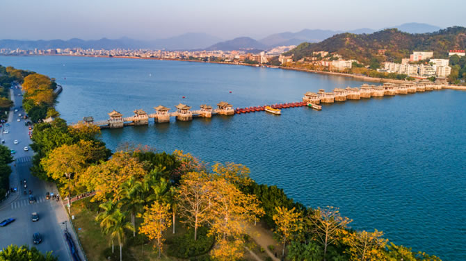 潮州自然風(fēng)光秀美。古城區(qū)筆架山、金山、葫蘆山三山拱護,韓江繞古城而過,山光水色十分宜人。