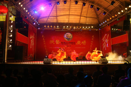 占地1600平米的全新“演藝廣場”可同時容納上千名觀眾觀看精彩的文藝表演,演員和觀眾還可以現(xiàn)場互動、參與。舞臺采用價值數(shù)百萬的立體音響設(shè)備,裝飾流光溢彩的燈光效果,彰顯藝術(shù)大舞臺的魅力。數(shù)十名技藝精湛的演員輪流作民間雜技、歌舞、特技、絕技等全天候表演,精彩不斷,亮點(diǎn)紛呈。游客可在觀賞具有獨(dú)特中國鄉(xiāng)土風(fēng)情的文藝節(jié)目的同時,參與體驗(yàn)民間鄉(xiāng)土文藝演出的神奇魅力。此外,觀瀾演藝廣場2樓還設(shè)置裝修豪華、座位舒適、服務(wù)完美的10間卡啦Ok包房,為VIP客人提供人性化演藝服務(wù)。