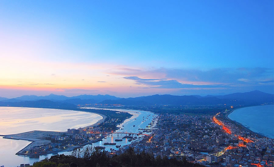 雙月灣位于惠東縣港口濱海旅游度假區(qū),地處惠東縣稔平半島的南端,三面環(huán)海,因形狀鳥(niǎo)瞰似兩輪新月,故名“雙月灣”。雙月灣共分兩灣,由大亞灣和虹海灣相鄰的兩個(gè)半月形組成。左灣水平如鏡,右灣波濤洶涌,兩條沙垅直奔大星山,如蛟龍出海,似雙龍戲珠,有靜有動(dòng),十分壯麗。