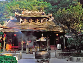 二絕:寺里最壯觀的主殿是大雄寶殿,殿內(nèi)經(jīng)常香煙鼎盛,但卻終年空氣潔凈,沒有香煙薰人。傳說是因?yàn)榈铐數(shù)脑寰鸬淖饔谩?/p>