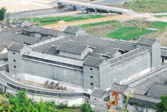 九棟十八井位于韶關(guān)市新豐縣馬頭鎮(zhèn)潭石村(新豐縣馬頭鎮(zhèn)G105國(guó)道旁與大廣高速馬頭出口交叉口西北側(cè)),始建于清康熙年間,占地面積2.5萬平方米,總建筑面積1.5萬平方米。九棟十八井為三進(jìn)院落四合院式布局,很有氣勢(shì)。建成橫三棟、縱三棟,名謂九棟,共有一百六十六間房屋;每三棟各有六口天井,共為十八井,故稱九棟十八井。建筑群由門樓、前院排屋、圍墻、主體建筑連接圍合而成,并內(nèi)設(shè)有書屋(已被毀)、水磨房、碾米房、織布房等。硬山頂門樓北向,門上石匾額陽刻“棣萼樓”;主體建筑群由三組建筑并列組成,中心組群為祖祠,左右兩組為支祠。三組建筑平面規(guī)制基本相同,是以廳堂為軸心,左右各配置天街、串屋,天街均向正面開門;祖祠正面兩角各設(shè)一角樓,二層,鍋耳山墻;左右支祠外角各設(shè)一角樓,二層,山字山墻。祖祠、支祠廳堂均三進(jìn),兩支祠進(jìn)深略短。其上中下三廳均為抬梁式木構(gòu)架,木構(gòu)件多有精美雕飾。該圍屋規(guī)模龐大,布局嚴(yán)謹(jǐn),外觀雅致,工藝精細(xì),雕飾精美,是新豐境內(nèi)保存較完整的客家圍屋,具有較大的歷史、建筑工藝等研究?jī)r(jià)值,2012年列入新豐縣不可移動(dòng)文物名錄。