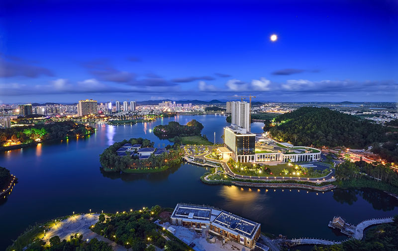 東湖水庫是陽江八景之一。該庫區(qū)水面星星點點分布著108個島,故名曰“東湖星島”位于陽東縣那龍鎮(zhèn)東南5公里。東湖原名老鄧水庫,它從1959年11月動工,1961年10月竣工,共建成大壩3條,堵住了那龍河的一條支流,與周圍的群山環(huán)抱而成庫區(qū)。東湖水庫的集雨面積達50多平方公里,水庫容量達1。23億立方米,是我省庫容超億立方米的大型水庫之一。深坳河、黑木頭河、大陂黃竹水河三條河的潺潺流水和水庫周圍高山的淙淙清泉源源不斷注入庫區(qū),水庫四季水源充足。