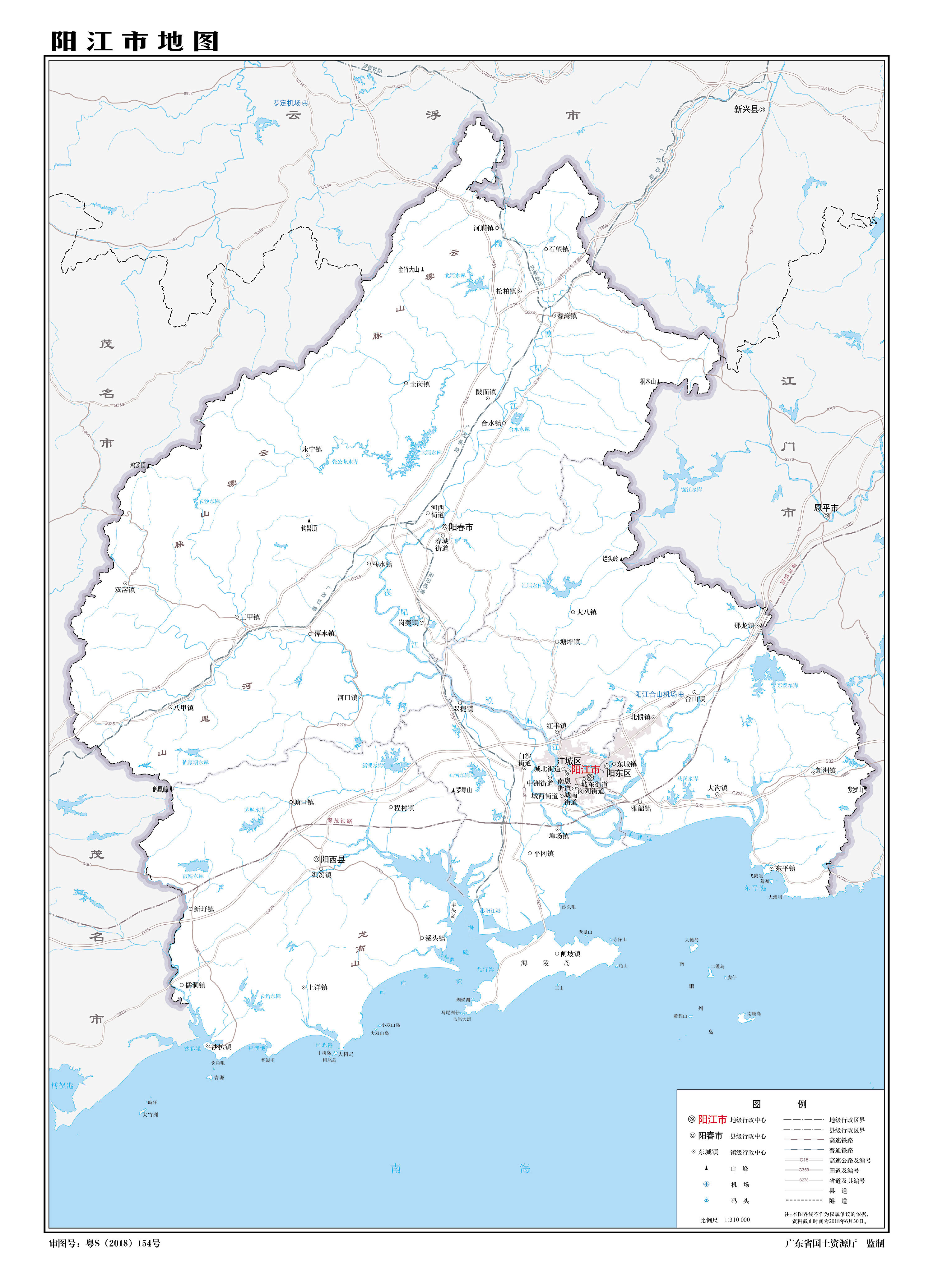 陽江市轄2個市轄區(qū)、1個縣,代管1個縣級市: