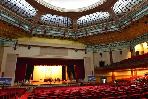 紀(jì)念堂內(nèi)部結(jié)構(gòu)異常堅固,全部用鋼架和鋼筋混凝土構(gòu)成,大堂內(nèi)空間極大,舞臺前上、下兩層有4729個席位,而中無一柱遮擋,全由隱蔽在墻壁間的八根大柱支撐,堪稱建筑藝術(shù)之杰作。