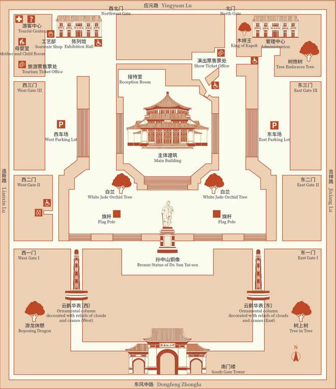 一般人很難注意到,沿著孫中山銅像往正門走,登上兩段臺階,這兩段臺階的級數(shù)分別是九級和五級。中國古代通常把數(shù)字分為陽數(shù)和陰數(shù),奇數(shù)為陽,偶數(shù)為陰。陽數(shù)中九為最高,五居正中,因而常常以“九”和“五”象征帝王的權(quán)威,稱之為“九五之尊”。