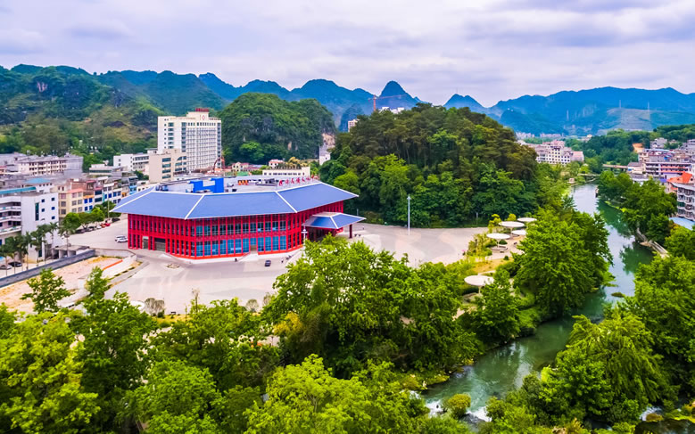 德保芳山文化體育公園范圍包括原九曲橋公園及芳山,位于縣城東部中心城區(qū),由鑒河景觀廊道串連而成,其間有山地、河流等各種豐富的自然景觀。公園總占地面積16.99公頃,其中綠化面積15.69公頃,水體面積3.361公頃,景區(qū)內(nèi)旅游資源豐富,這里空地清新,有蜿蜒清澈的河流、郁郁蔥蔥的草木,宛如世外桃源;這里歌圩之風(fēng)盛行,民族風(fēng)情濃郁,節(jié)慶活動(dòng)豐富多彩,是一個(gè)集濱河觀光、文化體驗(yàn)、休閑度假、健身娛樂、生態(tài)科普于一體的多功能旅游景區(qū)。