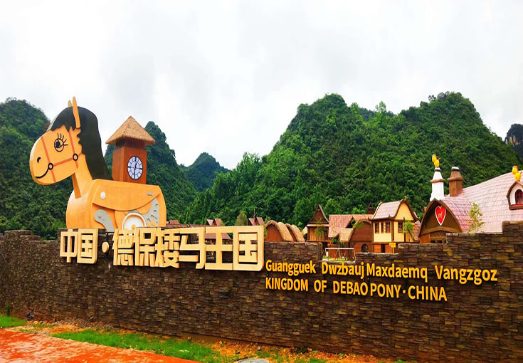 德保矮馬王國景區(qū)位于德?h燕峒鄉(xiāng)興旺村坡寧屯(吉星巖AAAA景區(qū)出口處),一期開發(fā)建筑面積400畝,建設(shè)內(nèi)容有矮馬王國競技場、萌寵部落、矮馬小鎮(zhèn)、矮馬游樂園、矮馬劇場、木屋酒店、帳篷酒店等項(xiàng)目,涵蓋動(dòng)漫賽事、親子游樂、互動(dòng)體驗(yàn)、教育科普、文化演藝等于一體。矮馬王國景區(qū)從德保矮馬“萌”的核心特色出發(fā),將德保矮馬IP化,以親子卡通化的形象表現(xiàn)手法,創(chuàng)意“矮馬保保”的主人公形象,將德保矮馬打造成為華南萌主;以故事場景化的主題敘事手法,構(gòu)建“矮馬保保”和他的小伙伴們的王國樂園,打造以德保矮馬為IP的主題家庭親子旅游目的地。讓孩子置身于童話故事中,兼具開發(fā)智力、認(rèn)識自然的同時(shí),還能兼顧大人玩耍與視覺審美,是全家人親子互動(dòng)、休閑娛樂的地方。