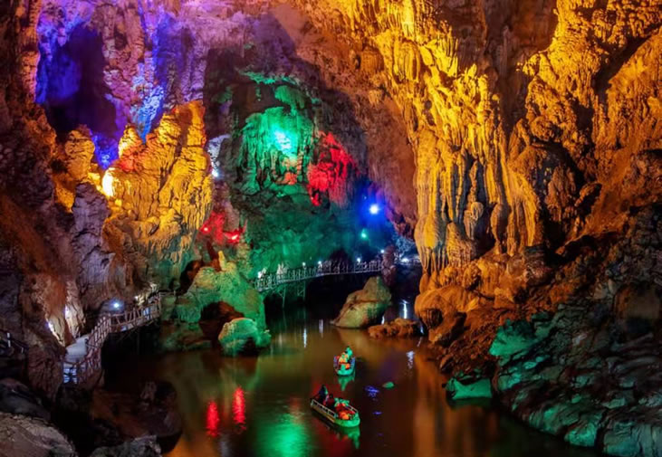 廣西平果通天河景區(qū)又稱(chēng)“敢沫巖”、“紅軍巖”,是一個(gè)溶洞暗河型景區(qū),位于廣西百色市平果縣黎明鄉(xiāng)208省道旁。溶洞最大特點(diǎn)是面積大,總面積超過(guò)10萬(wàn)平方米,其中“天上人間”面積3.3萬(wàn)平方米;空氣好,6處洞口空氣通暢;空間高,最高的“九九洞天”99米;景點(diǎn)多,石筍、石柱、石幔、石瀑、石盾、石梯田、石鐘乳千姿百態(tài),鬼斧神工,20米以上石柱26余根;景觀奇,“神奇龍脊”長(zhǎng)達(dá)60多米,鎮(zhèn)洞之寶“金銀雙塔”各高達(dá)30多米。通天河景區(qū)于2013年被評(píng)為國(guó)家AAAA景區(qū)。景區(qū)位于廣西西南部中心地帶,東距大化紅水河28公里,可連接大化七百弄等景點(diǎn);北距巴馬縣63公里,208省道直達(dá),適合與巴馬連線(xiàn)旅游,可連接“東巴鳳”各景點(diǎn);西可連接百色、德天瀑布、通靈大峽谷等景點(diǎn);南距南寧190公里,可連接南寧、北海等景點(diǎn)。