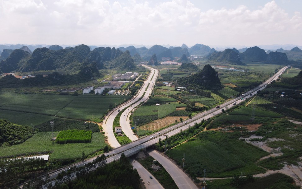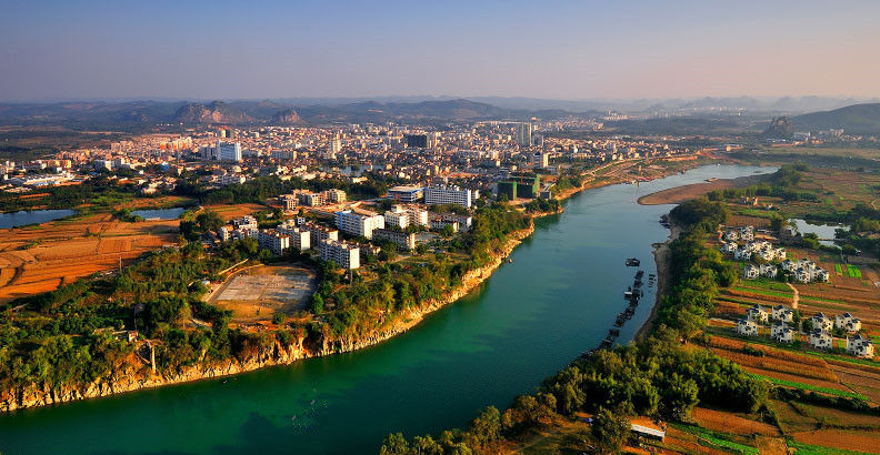 扶綏縣境地勢(shì)南北高,中間低,由西向東傾斜。南部和北部是高山土嶺,峰叢谷地,中部為低丘臺(tái)地,間有孤峰。巖溶地層分布很廣,約占全縣土地面積的三分之二。