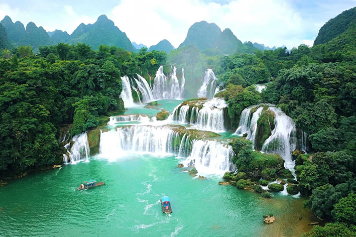 德天跨國瀑布位于祖國西南邊陲——廣西崇左市大新縣,開門是越南,跨步進(jìn)東盟,是2015年11月中越兩國總書記見證簽約的中國首個(gè)跨境旅游合作區(qū)。距廣西首府南寧約196公里,距大新縣57公里,距紅色革命老區(qū)百色188公里,奇特的喀斯特地貌和自然山水風(fēng)光,被稱為中越邊境的百里山水畫廊。景區(qū)占地面積約5.75平方公里,橫跨中越兩國,形成中國的德天瀑布,越南的板約瀑布。因景觀獨(dú)特被譽(yù)為亞洲第一大跨國瀑布、中國最美的六大瀑布。