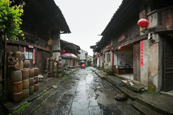 古鎮(zhèn)所有的房屋都是磚木結(jié)構(gòu),房門是一排木板,早晨把木板拿掉,家里的一切是透明的;到了晚上,再把木板裝上,就與外界隔絕了。這些房屋,每棟都有數(shù)百年的歷史。走在石板鋪成的街道上,房前有“咕嚕!蔽疅煹睦先艘约芭吭诶先四_邊打瞌睡的黃狗;肩上站著兩只魚(yú)鷹的漁夫穿著草鞋,從你身邊走過(guò),去江邊捕魚(yú);有相鄰的婦女在拉家常,時(shí)間仿佛在這里放慢行進(jìn)的腳步,生活顯得非常平靜,然而卻很溫馨。