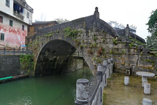 石板路旁的房子多為青磚、青瓦的兩層明清建筑,歷史滄桑隨處可見(jiàn)。每棟房子設(shè)計(jì)十分合理,集商住于一身,均由門前、天井、正房、廂房、后院組成。靠街的一般作鋪面從事商業(yè),有樓梯可上二層。往里走是天井,一般都栽有花草,利于采光;天井后是正房,高大寬敞,供著神像及祖宗牌位,是主人活動(dòng)、會(huì)客的地方;兩邊是用來(lái)居住的廂房。正房、廂房的門窗上都雕有花紋;正房后有門可到后院,后院臨江并建廚房和廁所,有石階可到江邊取水、洗衣。到大圩,萬(wàn)壽橋是必去的地方。萬(wàn)壽橋詩(shī)建于明代,是一座石塊砌起的石拱橋,橋面的石頭已被磨得溜光發(fā)亮,間雜些許小草,古樸自然。橋的西面是漓江,是欣賞漓江及對(duì)岸螺螄山的極佳位置。