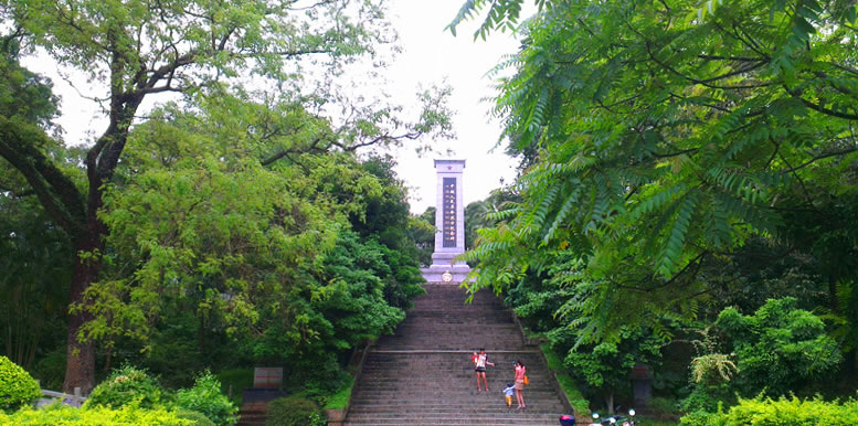 中越友誼公園總面積260畝。萋萋草木順著低矮的坡岡錯(cuò)落地生長著。公園中心最高處矗立著“中越人民革命烈士紀(jì)念碑”。公園內(nèi)有1960年越南胡志明主席贈送樹種栽的兩棵友誼樹。公園南側(cè)小山上,有在解放路戰(zhàn)爭中英勇獻(xiàn)身的陳漢東等六位烈士墓。陳漢東原名黃木芬,1937年參加中國共產(chǎn)黨,1945年6月在防城縣那良抗日武裝起義領(lǐng)導(dǎo)人之一。任欽防華僑抗日游擊大隊(duì)黨代表兼參謀長,于1945年6月底同敵人的一次戰(zhàn)斗中英勇犧牲。1959年移葬于此,墓碑上刻有“陳漢東烈士合葬墓”。從公園入口處,順著林間的小徑往右側(cè)山丘走去,走百多米,一座高聳的紀(jì)念碑便立于眼前。紀(jì)念碑正背面分別用中越文字題寫“光榮的人民英雄永垂不朽”,碑座正背面也分別用中越文字鐫刻著在抗法援越戰(zhàn)上犧牲的中國英烈名字。1958年經(jīng)東興縣人民委員會與越南海寧省政府商定,為在1954年的援越解放斗爭中犧牲的中國軍人立這座紀(jì)念碑。中越人民友誼公園,正是為紀(jì)念這份用鮮血鑄成的戰(zhàn)斗而修建的。