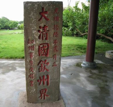 1885年6月9日,清政府與法國在天津簽定的《中法越南條約》規(guī)定,兩國邊界自竹山起,循北侖河出?谀媪鞫,以河心為界線。防城港市與越南的邊界線,從竹山的北侖河口至峒中的北崗隘,長200多公里,全段以石碑為標(biāo)志,共立1至33號界碑。竹山界碑是清光緒十六年(公元1890年)所立的第一塊界碑,故稱大清國一號界碑。100多年來,竹山一號界碑歷盡滄桑,屹立于北侖河口巋然不動(dòng),顯示了中國領(lǐng)土的神圣不可侵犯,故竹山一號界碑具有較高的歷史價(jià)值和現(xiàn)實(shí)意義。