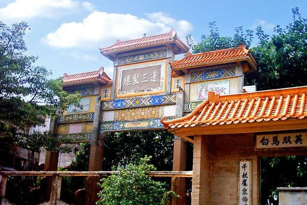平南縣城東七十里的白馬圩風(fēng)景區(qū)。該處有明督師袁崇煥故里和南漢梁嵩狀元廟遺址。梁嵩為五代南漢時(shí)人,經(jīng)苦學(xué)考取狀元及第,仕至翰林學(xué)士,因不滿虐政,辭官歸里,過(guò)白馬東濠河溺歿,州人感其請(qǐng)蠲免龔州丁賦之德,立廟以祀。袁崇煥詔授兵部尚書兼三邊總制時(shí),曾在家鄉(xiāng)平南白馬建有“總制三邊坊”。1986年,在白馬圩重建改建了“袁崇煥總制三邊坊”和“梁嵩紀(jì)念館”,與巍巍辰嶺,悠悠碧水,互相輝映,殊為壯觀