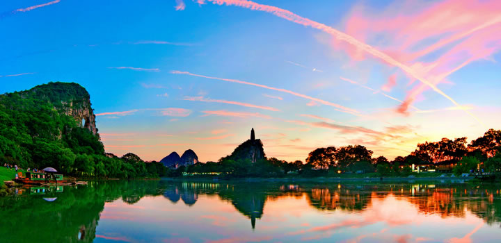 桂林穿山景區(qū),國家4A級旅游景區(qū),國家級重點風景名勝區(qū),是自然風景與人文景觀相映襯的著名風景區(qū),因園內(nèi)山峰穿山而得名,位于桂林市區(qū)漓江東岸,總面積53.8公頃,主要景點有穿山、塔山、月巖、穿山巖、壽佛塔等景觀。穿山被譽為“世界罕見神奇的水晶寶洞,位于穿山山腹,巖洞常年溫度保持在22攝氏度,冬暖夏涼。主要景觀有天鵝湖、一線天、水簾洞、芭蕾腳、龍戲龜、卷曲石等。穿山是桂林的名山之一,自古負有盛名,穿山主峰有一穿洞,空明正圓,好似一輪明月高掛,因此得名月巖。登上月巖,不僅可以欣賞到摩崖石刻,還可以眺望漓江和桂林城景。小東江自北而南,曲貫穿山與塔山之間。塔山頂上,是一座明代七層實心壽佛塔,有“塔山清影”之譽,是桂林“老八景”之一。