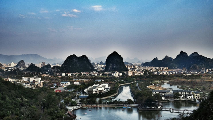 地形地貌 七星區(qū)地形東高西低,北高南低,地勢低平,盆地呈南北延伸狀,自北向南微傾斜,最高點為堯山主峰,海拔909.3米;主要地貌類型包括峰林平原、孤峰平原為主的巖溶地貌和構(gòu)造一侵蝕低山丘陵地貌。按巖石類型可分為巖溶地貌和非巖溶地貌,此外還包括漓江沿岸的流水侵蝕一堆積地貌。