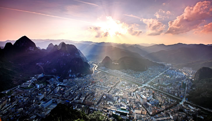 鳳山縣,隸屬于廣西壯族自治區(qū)河池市,地處云貴高原南部邊緣地帶,地勢(shì)由西北向東南傾斜,山多地少,典型的喀斯特巖溶地貌,自然旅游資源異常豐富,70%面積為大石山區(qū),30%面積為土山區(qū),耕地面積101726畝。屬亞熱帶季風(fēng)氣候區(qū),雨量充沛,光照充足,溫和濕潤(rùn),年平均氣溫20.1℃,全年降雨量1564.0毫米,無(wú)霜期362天。鳳山縣常住人口為169845人?偯娣e1729平方千米。