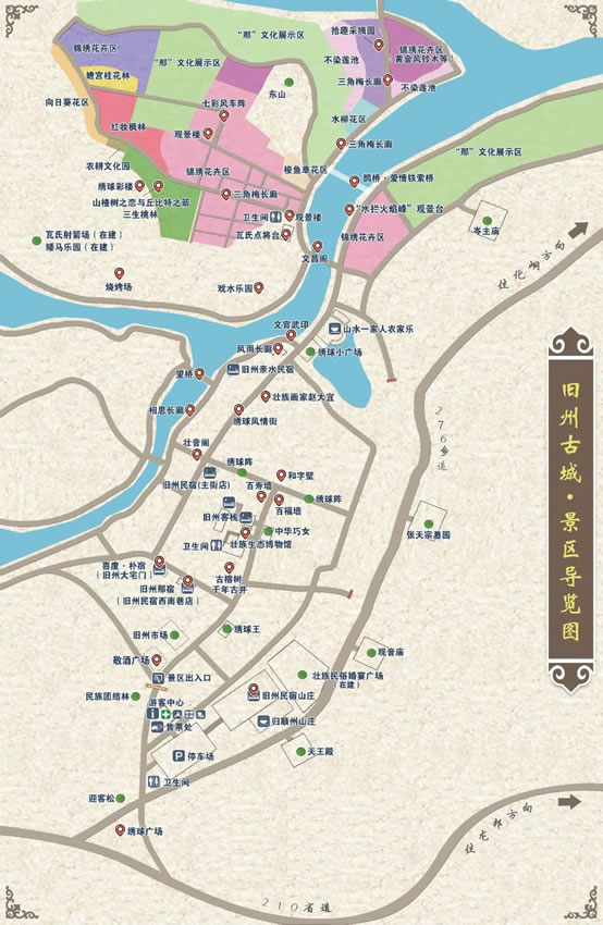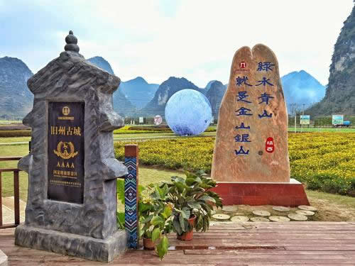 早在一千多年前,舊州古城就作為歸順州(靖西古名)的州府,一直是中越邊境線上重要的政治門戶、經(jīng)貿(mào)樞紐、文化中心和軍事要塞,是當(dāng)之無愧的“千年古城”,也是名揚(yáng)四海的抗倭民族巾幗英雄瓦氏夫人的故鄉(xiāng)。舊州風(fēng)光旖旎,景區(qū)的文物勝跡甚豐,有文昌閣、瓦氏夫人點(diǎn)將臺(tái)、繡球風(fēng)情街、壯音閣、千畝錦繡花海、望橋、明清時(shí)代建筑岑氏土司廟、張?zhí)熳谀箞@等景觀。舊州風(fēng)光是靖西田園風(fēng)光的縮影,吸納了靖西近千年古樸典雅的文化底蘊(yùn),將自然景觀和人文薈萃融為一體。